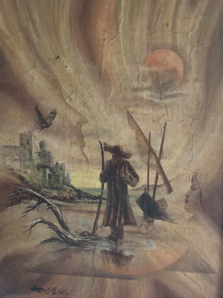 Ce tableau a été peint par Mickaël Petit, de Saint-Nicolas d’Aliermont (76) lieu de mon enfance. Un ami. une personne authentique. Paraplégique, mais plus debout que bien des gens. Il ne pouvait pas marcher, mais il avançait. Il peignait avec l’intérieur. Avec ce que beaucoup refusent de regarder : l’essentiel. Dans ce portrait, il y a un pèlerin seul, face à l’horizon. Mais il n’est pas perdu. Il marche, malgré tout. Et cette marche, aujourd’hui, elle continue. Je la poursuis. À ma façon. Avec mes mots. Avec mon combat. Avec mes silences aussi.“Mickaël a peint ce que je vis. Et moi, aujourd’hui, je rends visible ce qu’il a laissé en moi.”
