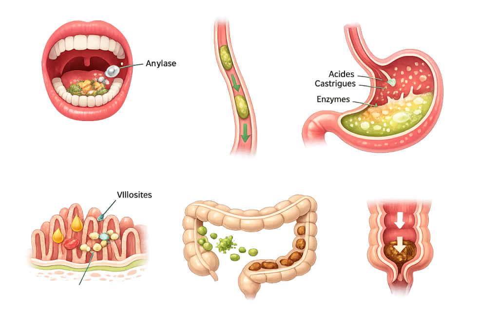 La salive entre en scène immédiatement. Elle libère une enzyme : l’amylase. C’est le premier acte de la digestion chimique.